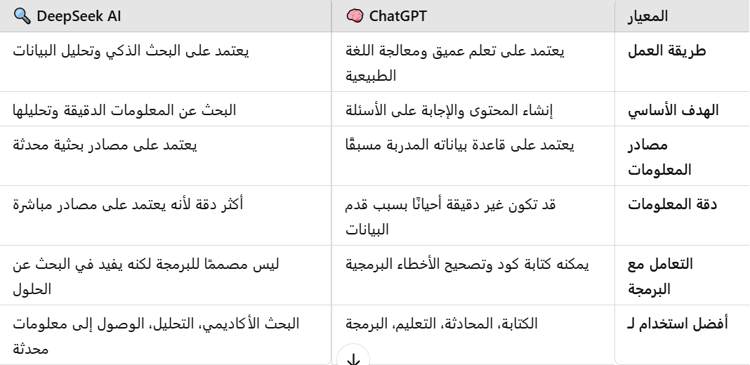 2. الفروقات الرئيسية بين ChatGPT و DeepSeek AI
